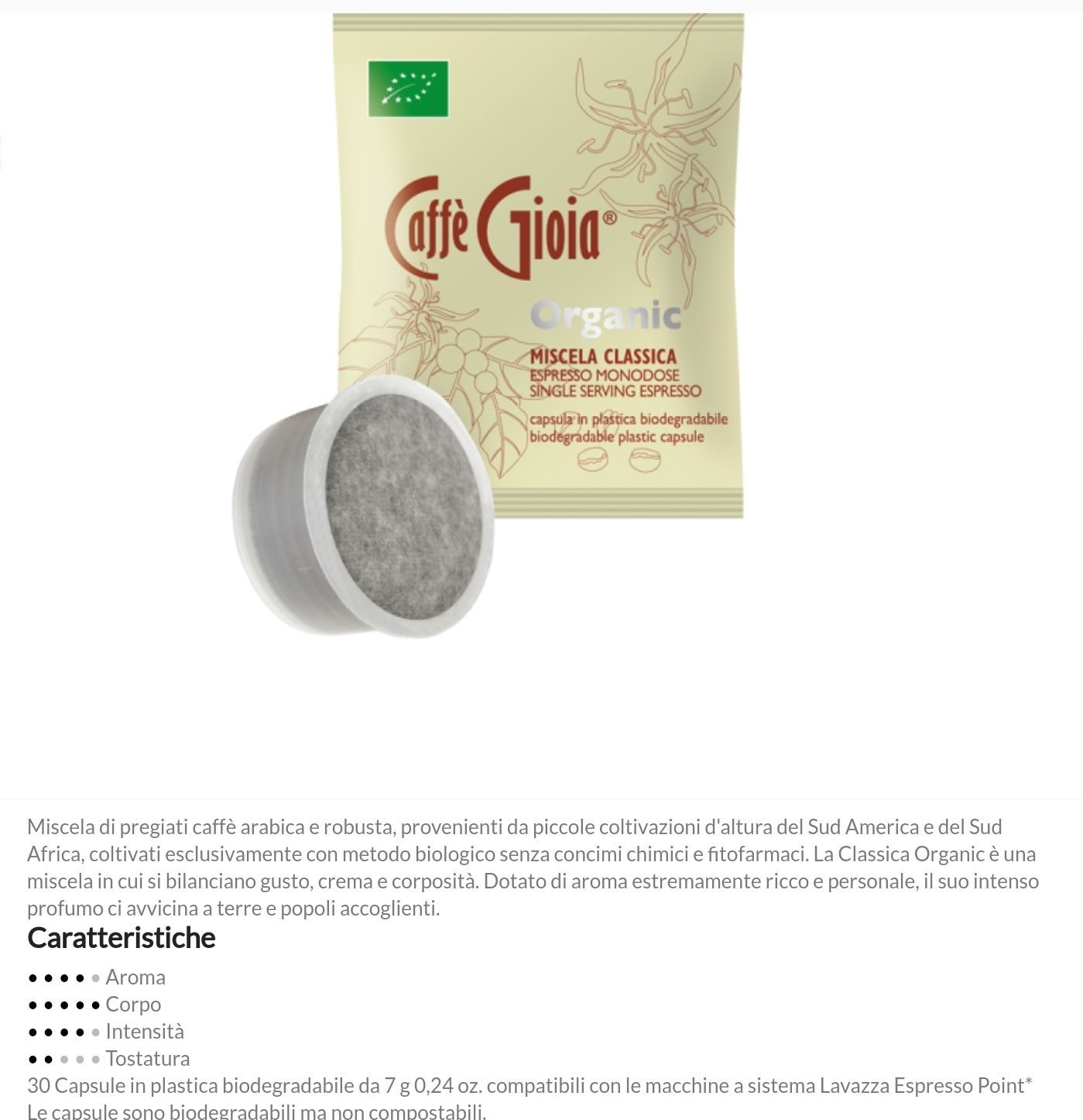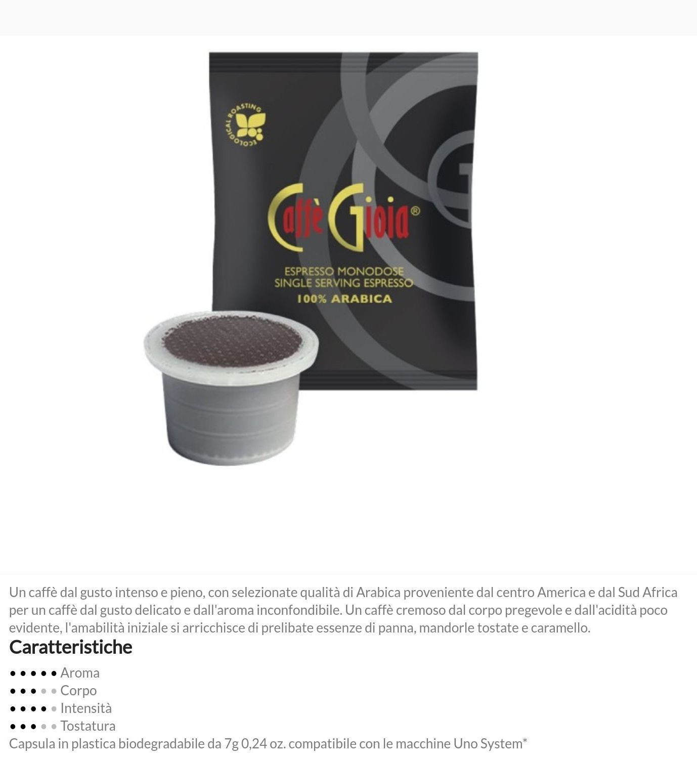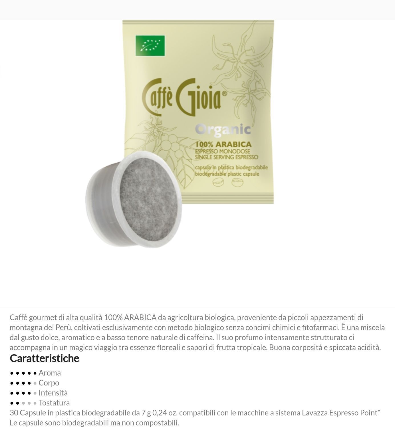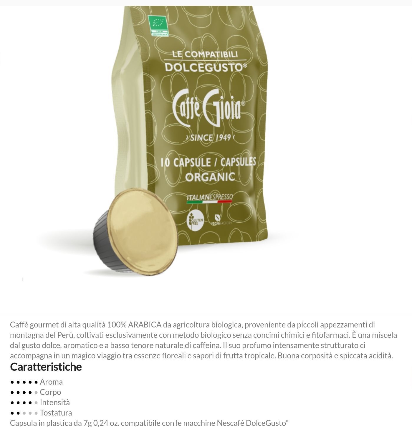 Capsule compatibili Nespresso*, Nescafé Dolce Gusto*, Lavazza Espresso* e monorigine Perù Arabica biologica