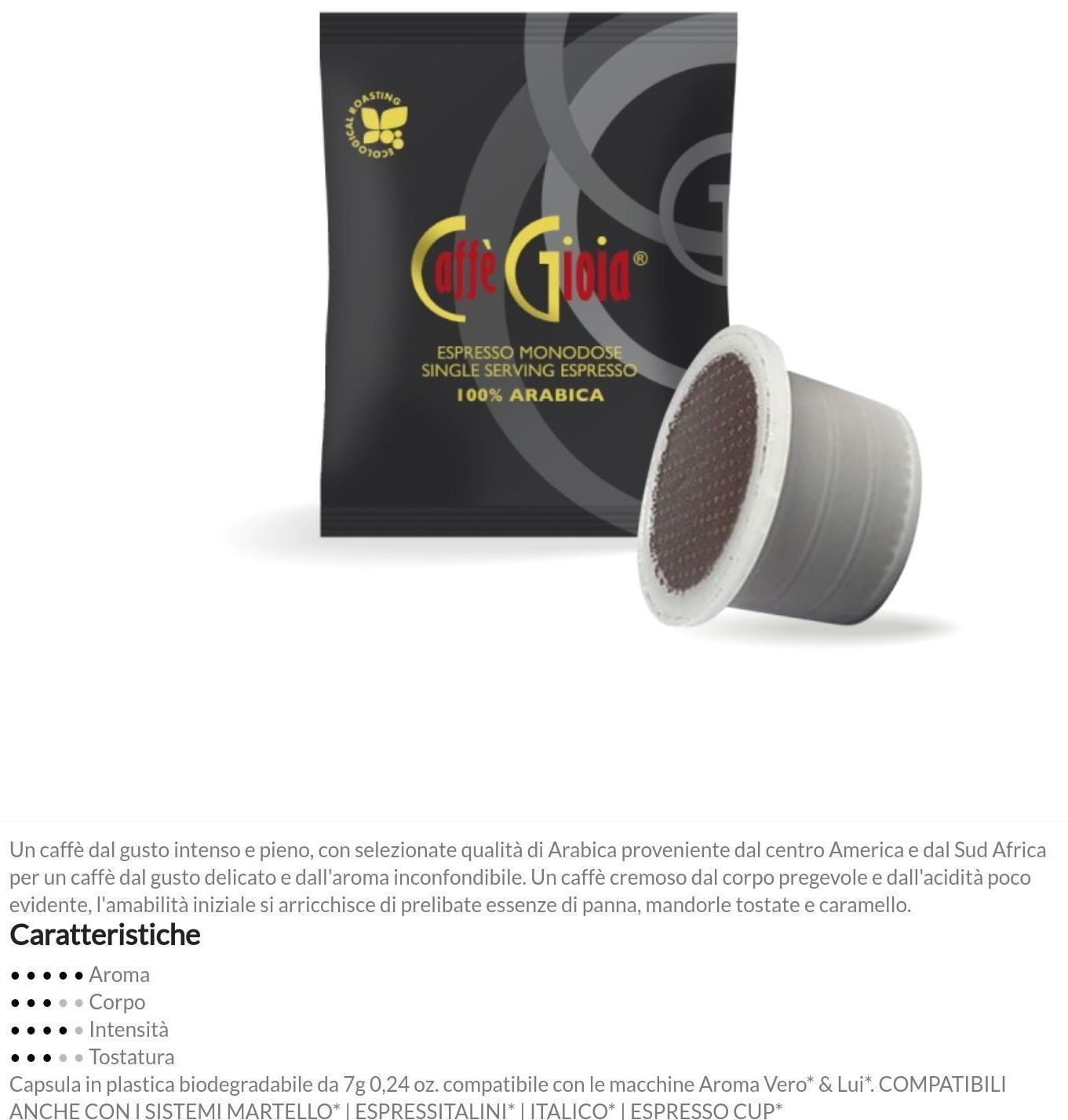 La gamma di caffè capsule compatibili include soluzioni adatte ai sistemi più diffusi. Ogni capsula viene realizzata con standard dimensionali e tecnici precisi, così da garantire funzionalità e sicurezza durante l’utilizzo.