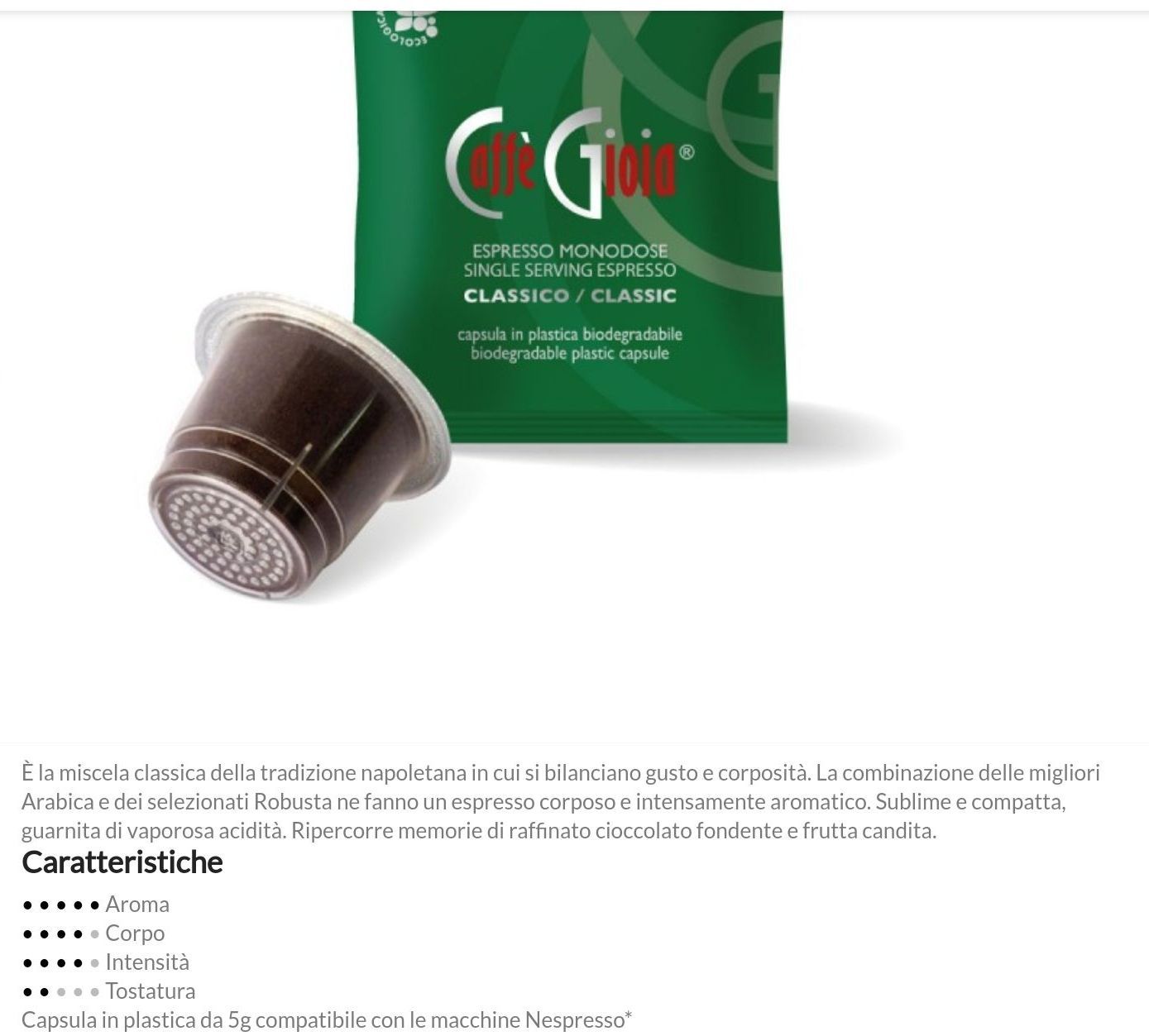 Sì, le capsule sono confezionate in modo da proteggere il caffè da luce e umidità, contribuendo a preservarne aroma e qualità.Sono disponibili capsule decaffeinate?